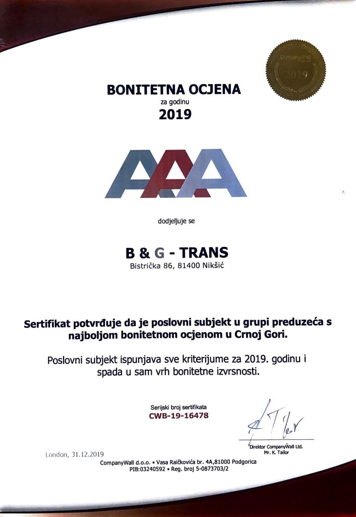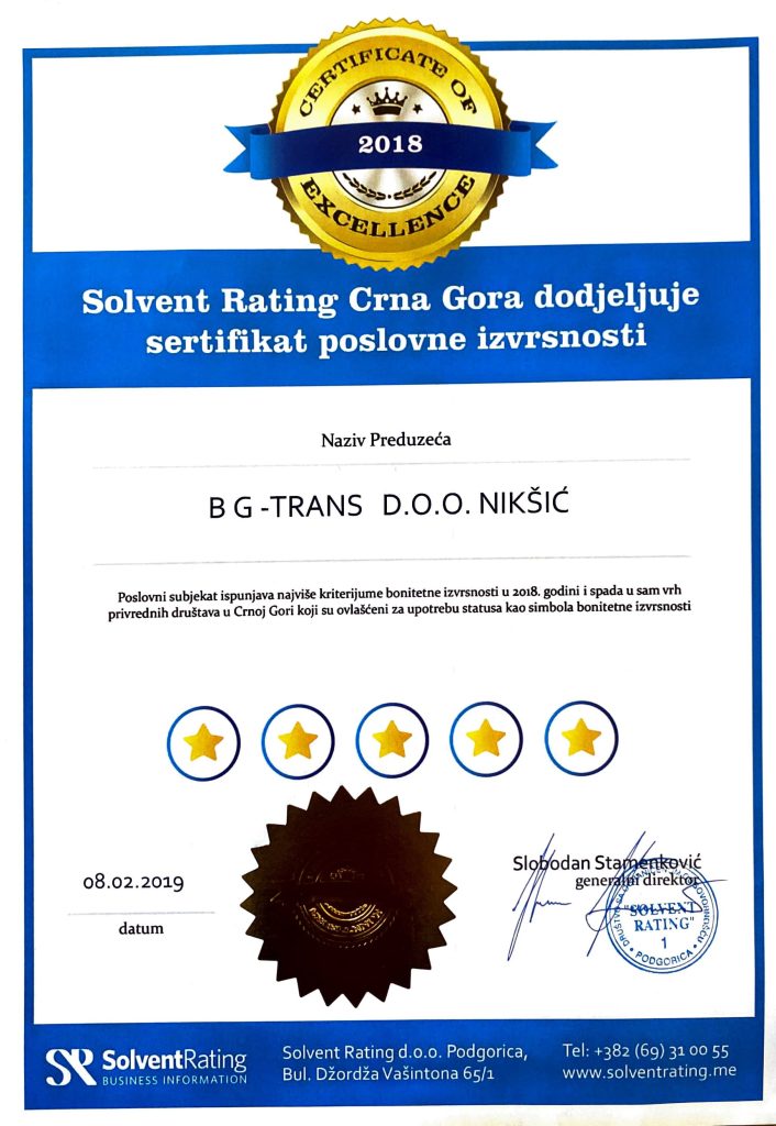 - SOLVENT RATING 2018 godine - COMPANY WALL (AAA bonitetna ocjena) 2019. godine